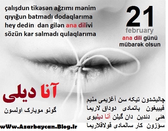 21 فئورال(شوبات)، 2 بایرام آیی(ایسفند)، آنادیلی گونو دیللری یاساقلانمیش میللتلره قوتلو اولسون.